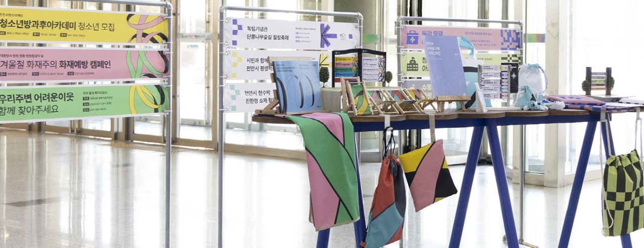 천안은 시간의 층 위에서 미래의 흐름을 만든다. ‘물결’은 변화와 도약, 미래를 향한 천안의 추진력을 상징하며 삼거리의 흥, 독립의 역사, 청춘의 에너지, 첨단 산업의 기술이 한 결로 쌓여 도시의 질감을 만들어 왔다. 이러한 흐름은 미래를 향한 ‘다음 물결’을 일으킨다. 천안의 단절되지 않은 시간의 켜를 통해 과거-현재-미래를 하나의 리듬으로 연결하고자 했다.